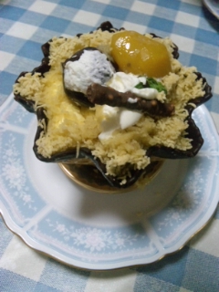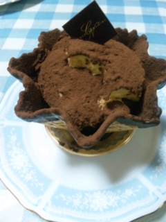 中はスポンジと栗のムースとクリームが入ってて、器はコーンなんで、バリバリ食べれます。