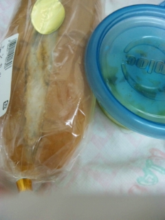 今日のお昼はパンとサラダです。結構ボリュームのあるトンカツサンドです。